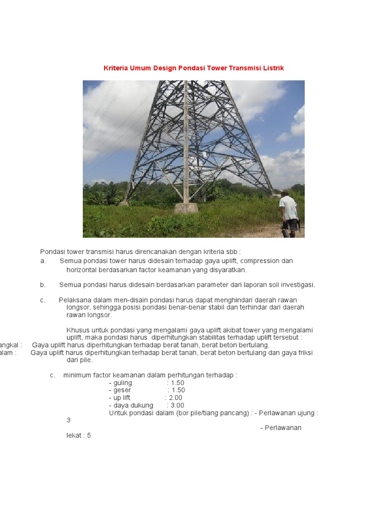 Kriteria Umum Design Pondasi Tower Transmisi Listrik Pdf